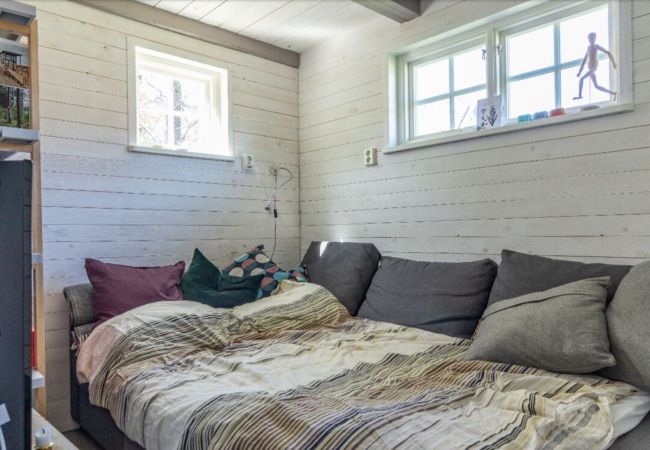 Die Hütte hat 36 m2 inkl. Schlafboden und verfügt über eine gut ausgestattete Küche mit Geschirrspüler, Mikrowelle, Kühlschrank/Gefrierschrank usw. Toilette mit Waschmaschine und Trockner. TV/Aufenthaltsraum mit 140 cm Schlafsofa. Schlafboden mit 140 cm Doppelbett. Klimaanlage und Internet mit eigenem Router sind verfügbar.