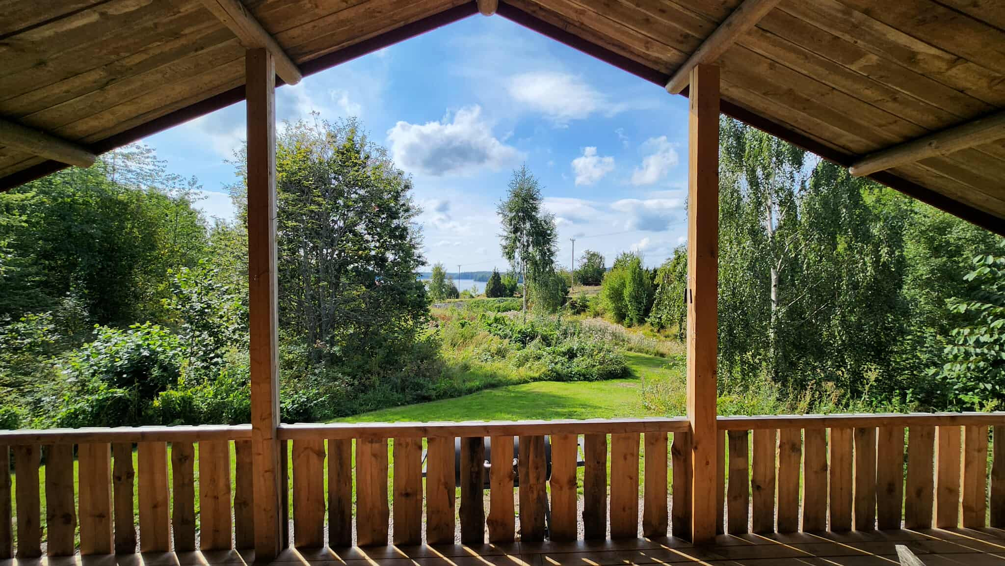 Hinter dem Wohnhaus, etwa 100 Meter entfernt, befindet sich ein Haus mit einer Holzsauna in einem Teil und im anderen Teil ein Zimmer mit einer Waschmaschine. Dieses Haus wird mit einem anderen Ferienhaus geteilt, das etwa 200 Meter entfernt ist.