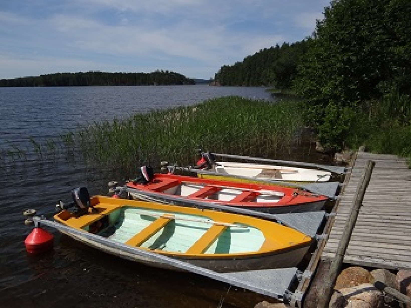 Um zum Boot und See hinunter zu gelangen, kommen Sie an einer Kuhweide vorbei. Wenn Sie mit dem Boot auf den See fahren, gibt es dort eine schöne Insel mit Sandstrand und Grillplatz. In Hycklinge gibt es auch einen Badeplatz mit Springturm.