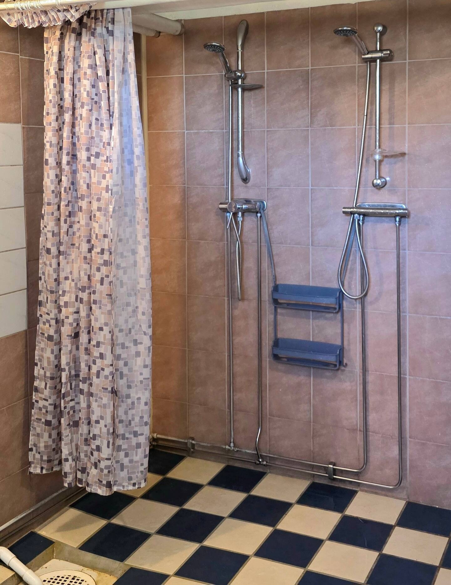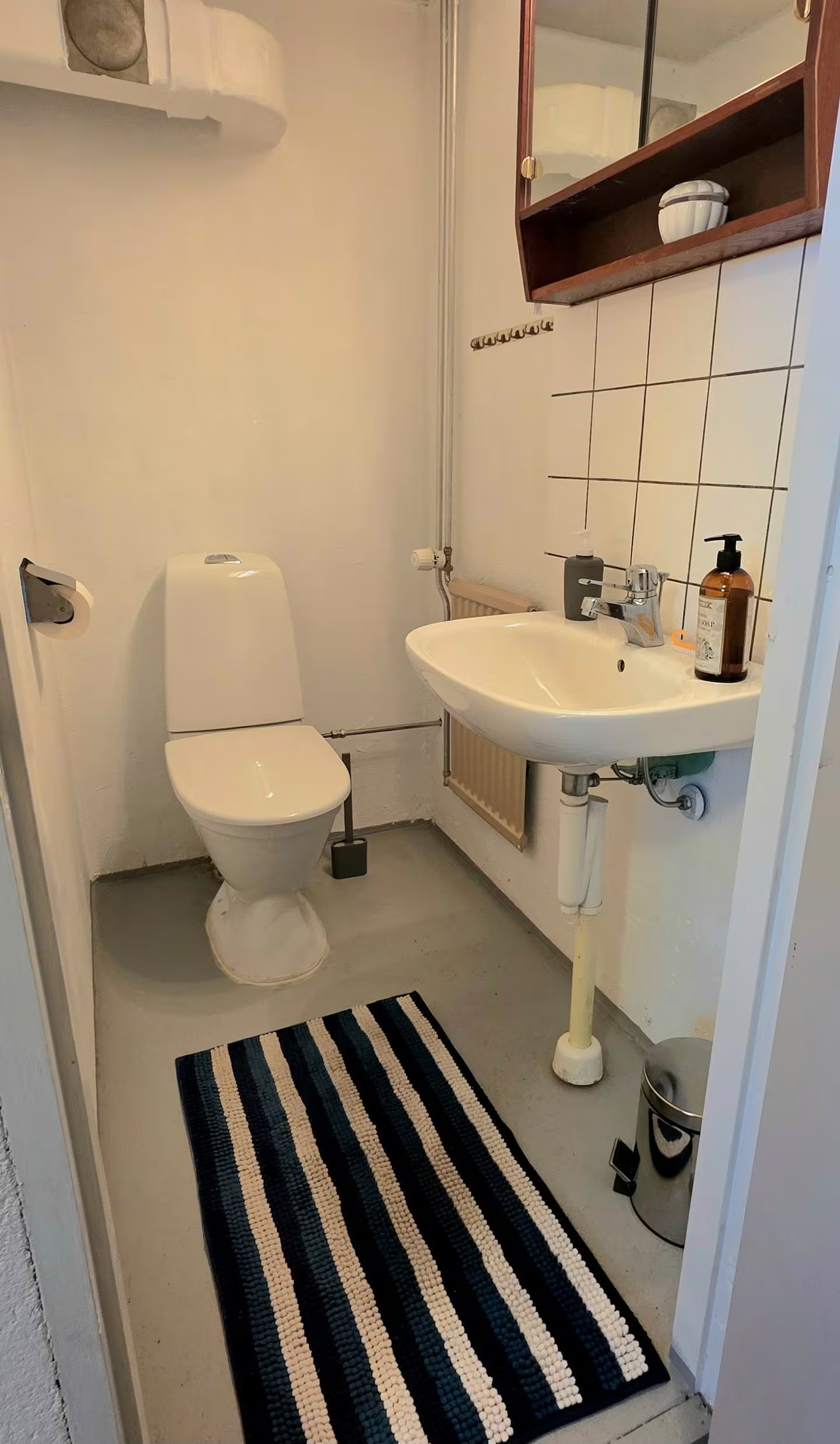 Aus dem Esszimmer heraus kommt man auf eine überdachte Terrasse. Der Garten hat Tisch und Stühle und 1 Sonnenstuhl. Man gelangt über eine Treppe in das Haus. Im Haus ist eine Toilette mit Waschbecken und im Keller ein weiteres WC mit Waschbecken. Im Keller findet man eine Doppeldusche mit Duschvorhang. Eine Waschmaschine und ein Wäschetrockner sind vorhanden.