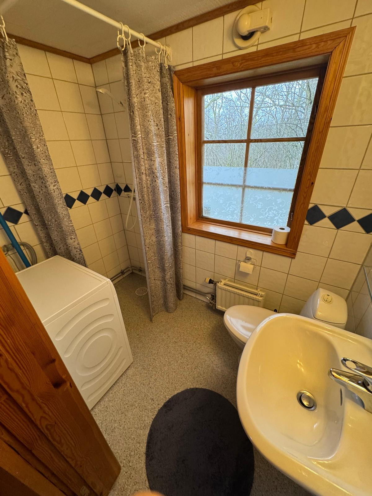 Das 70 m² große Ferienhaus liegt in ruhiger Lage an einem fischreichen See. Es verfügt über zwei Schlafzimmer mit Doppelbetten (180 cm) sowie ein Nebengebäude mit Doppelbett. Das Badezimmer ist mit einer Waschmaschine ausgestattet. Die gut ausgestattete offene Küche mit Geschirrspüler geht in den Wohnbereich mit Herd über. Eine Terrasse mit Stühlen und Tisch lädt zum Verweilen ein.