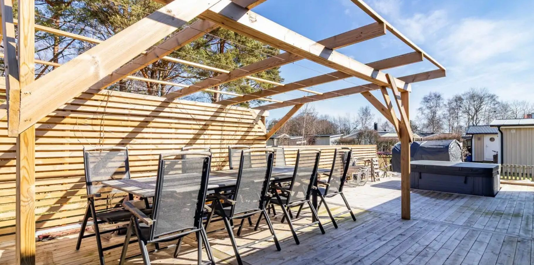 Dieses Domizil umfasst zwei neu gebaute, von Architekten entworfene Ferienhäuser mit insgesamt 95 m² (80/15), die im Frühjahr 2025 fertiggestellt wurden und einzeln oder zusammen gemietet werden können.