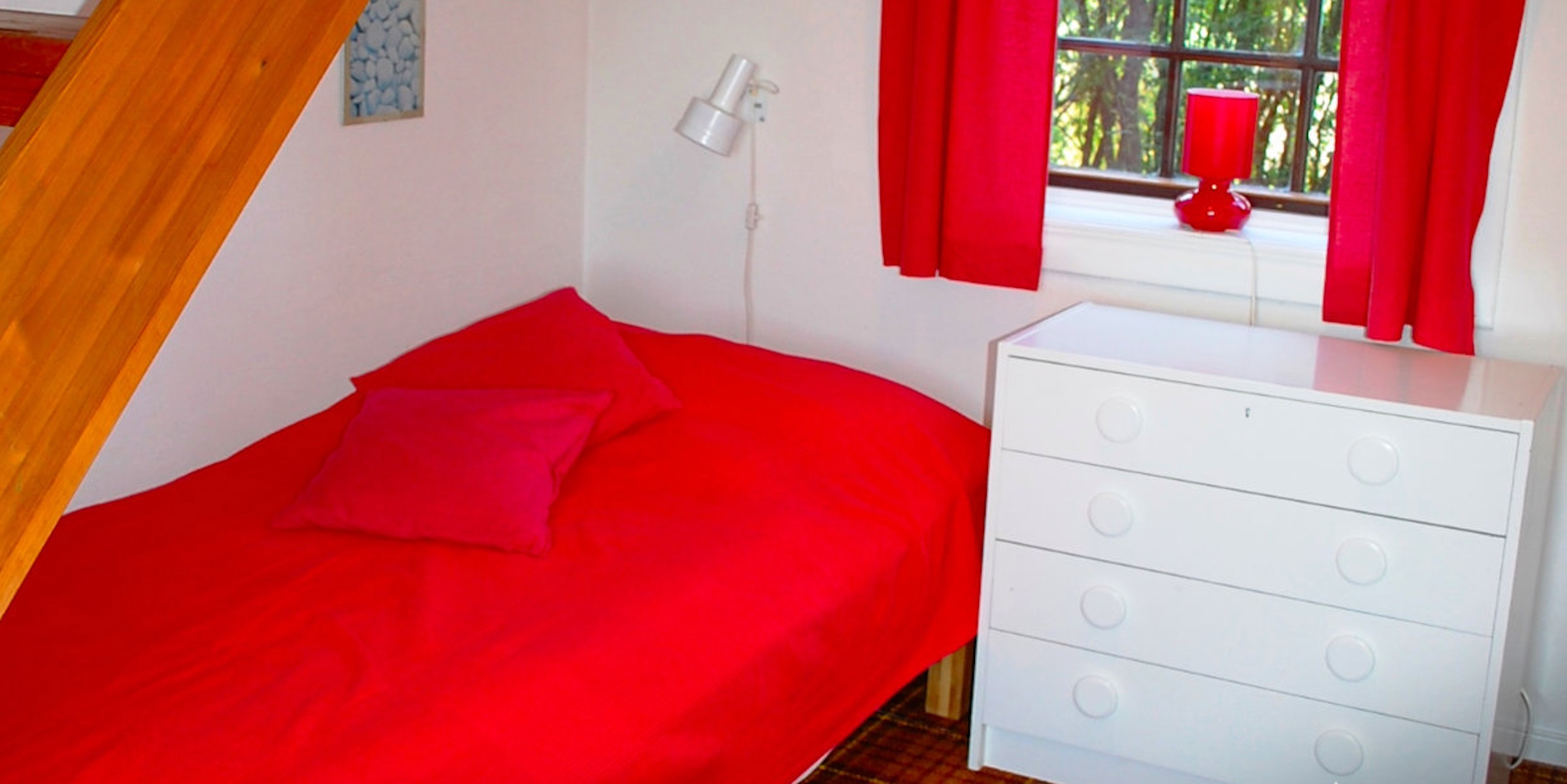 Im Erdgeschoss befindet sich im Flur neben der Treppe ein breites Einzelbett (105 cm).