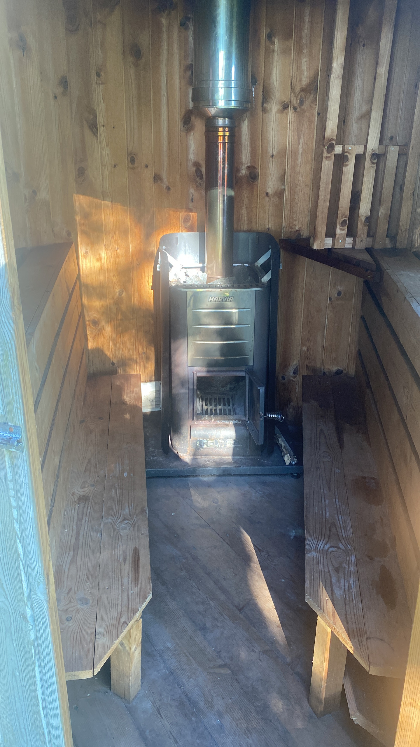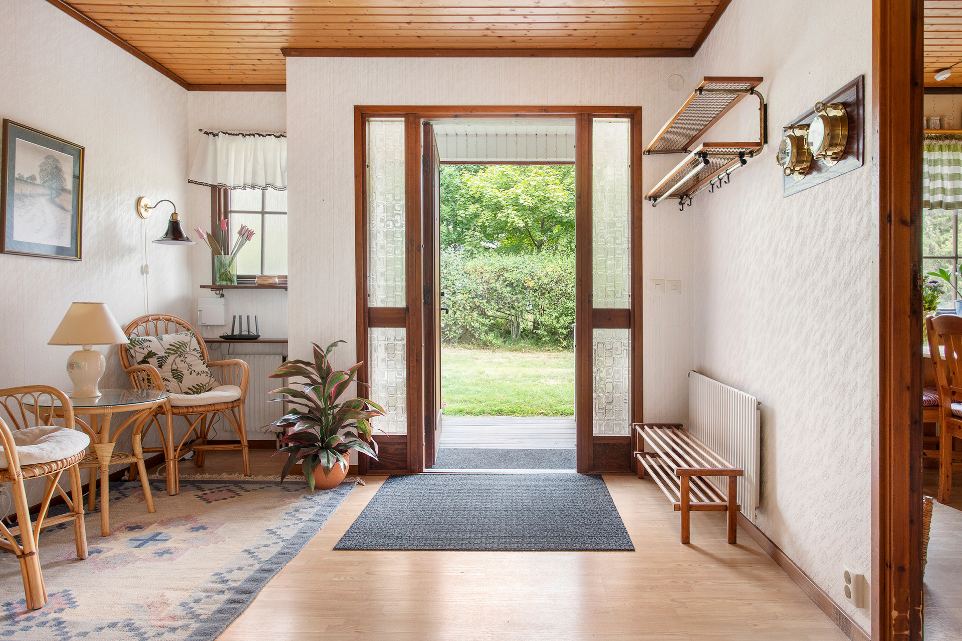 All rooms are located on one floor. Adjoining the living room is a spacious glazed veranda and a terrace. On the large plot of land, there is a wood-fired Finnish sauna with space for four to six people. Through the trees, one can discover the sea and listen to the song of the seagulls.