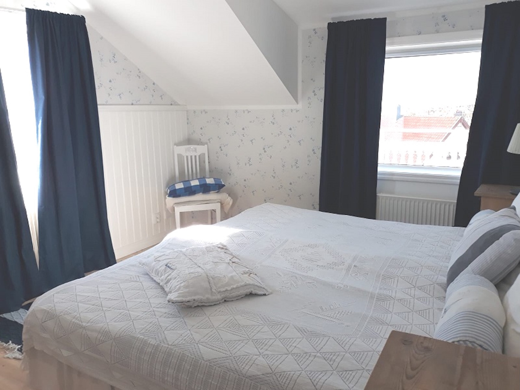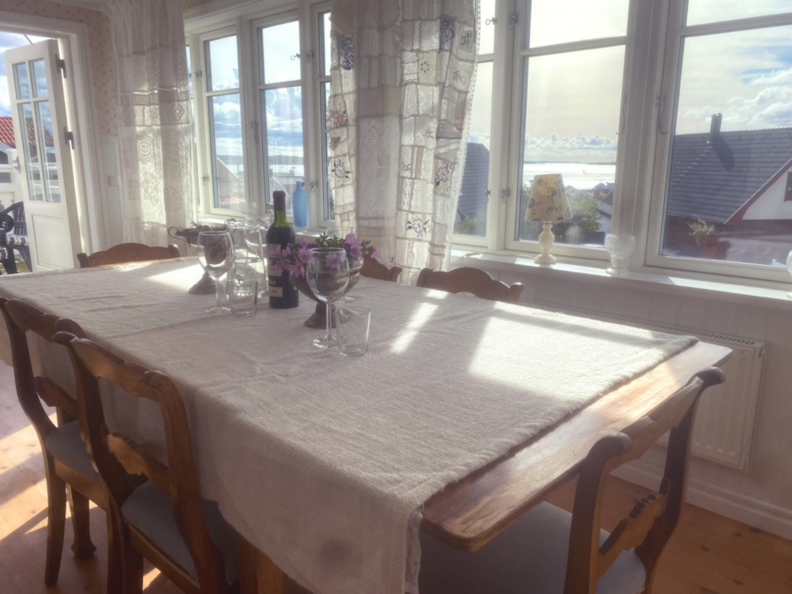 The house is located in the centre of Lysekil and has three balconies facing different directions, a large plot with a lawn and a driveway with space for several cars. The top balcony offers pure sunshine from sunrise to sunset.