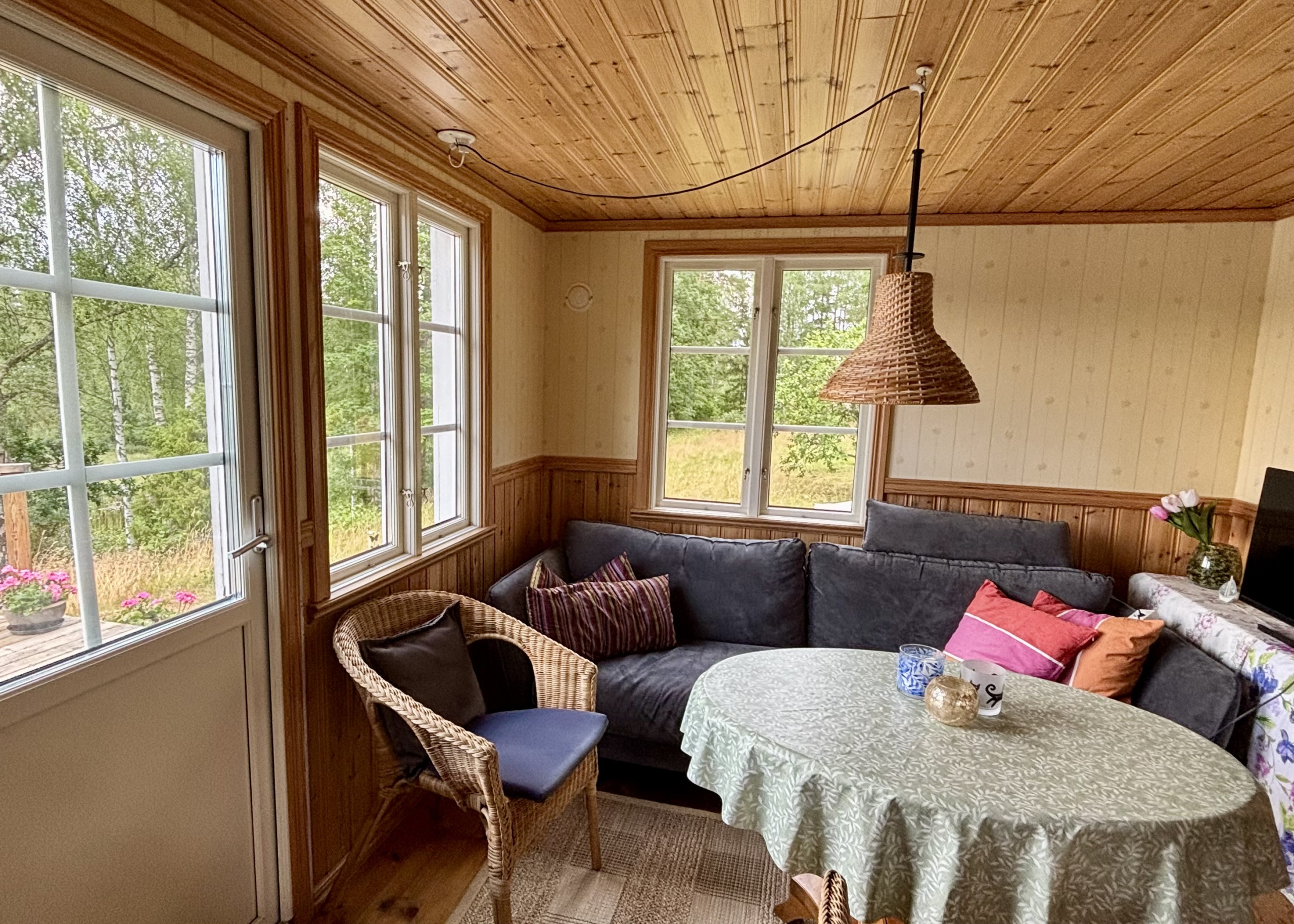 The typical red and white Sweden home is located only about 15 meters away from the edge of the water, a bit out of the way, with no town or people nearby, but in an idyllic surrounding at a large water property. Inside the holiday domicile mostly wood is used as building material, and the open fire in the TV room provides for hours in peace and quiet in the face of burning flames. For those of you, interested in fishing, the way to the rowing boat, belonging to the house, is not much more than a triple jump.