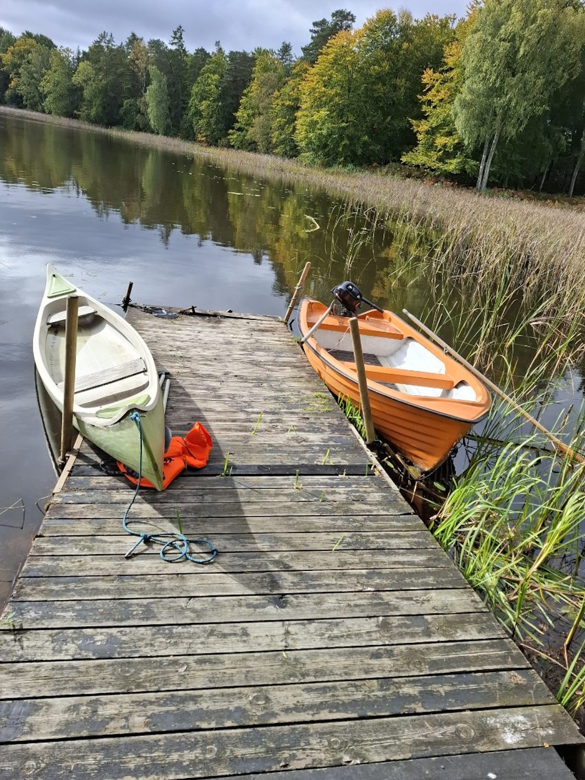 Sjövillan is located individually on its own headland in the lake "Åsnen". At the boat pier, there are two plastic boats with outboard engines (petrol) and a canoe at guests' disposal. The lake outside the lake villa does not require a fishing license, as the fishing water is private (the landlord's). Fishing is included in the rent of the lake villa.
