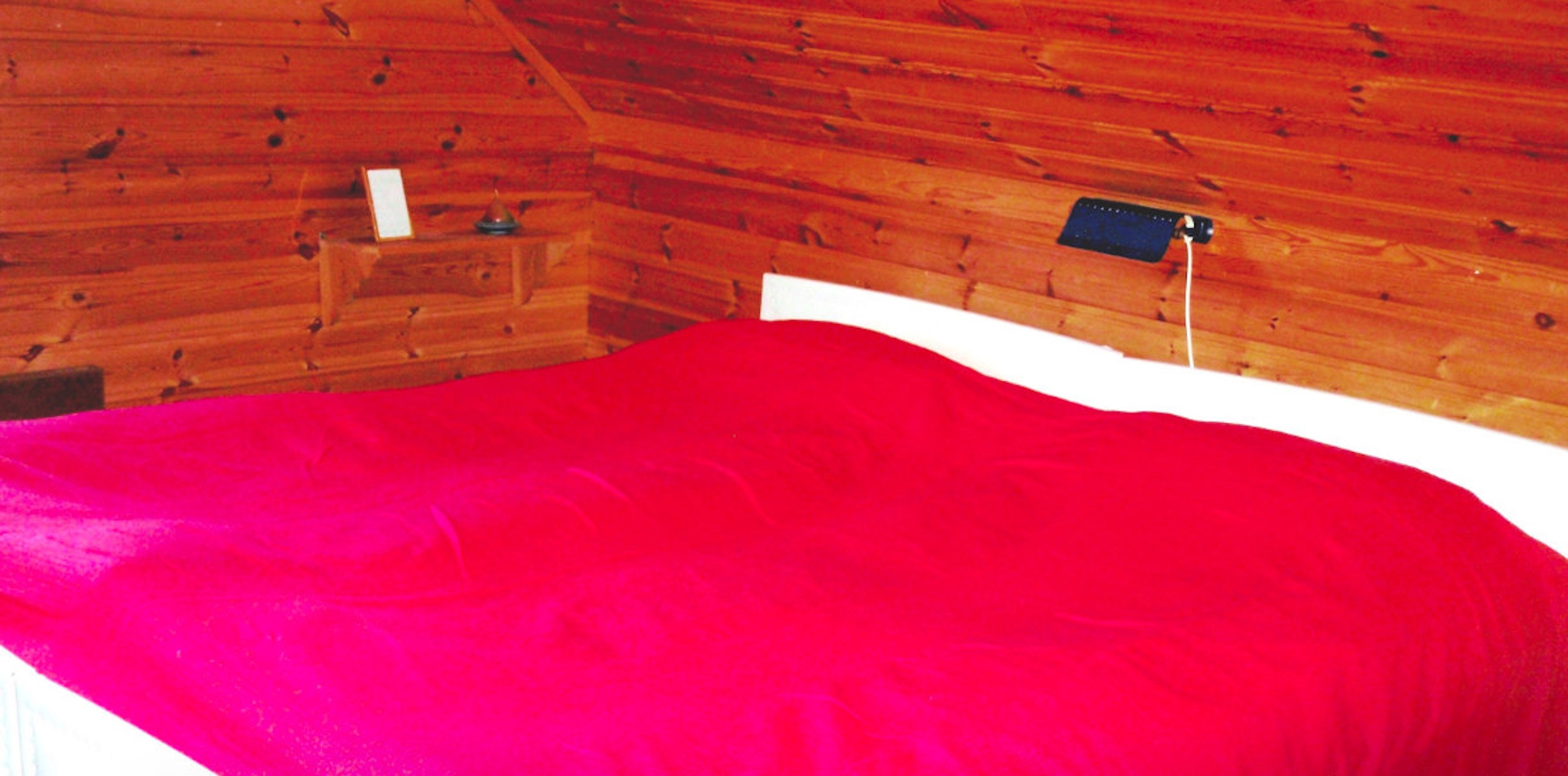 The stairs lead to the sleeping loft which provides comfortable sleeping space for two people with a wide double bed (180 cm) Can
