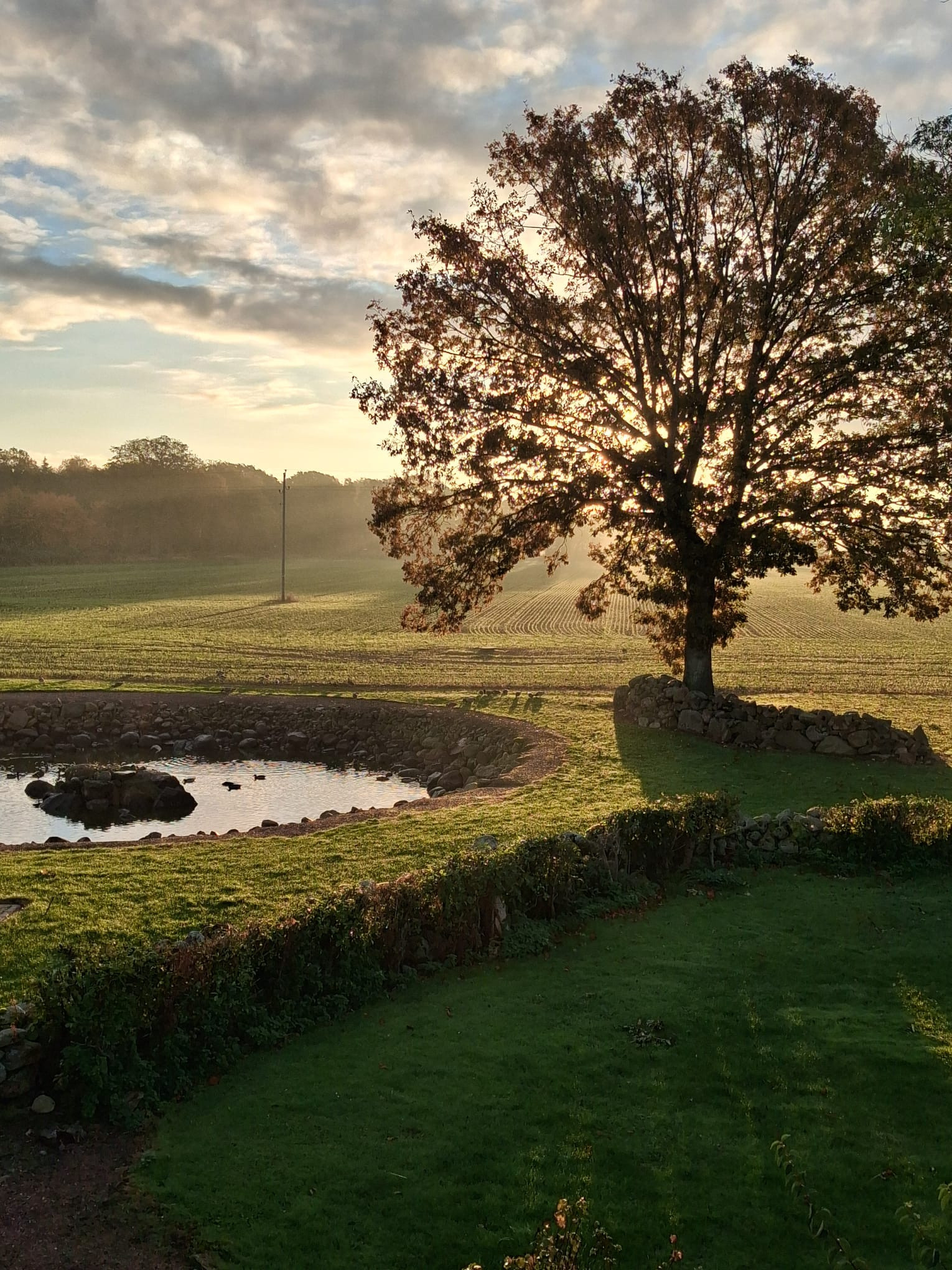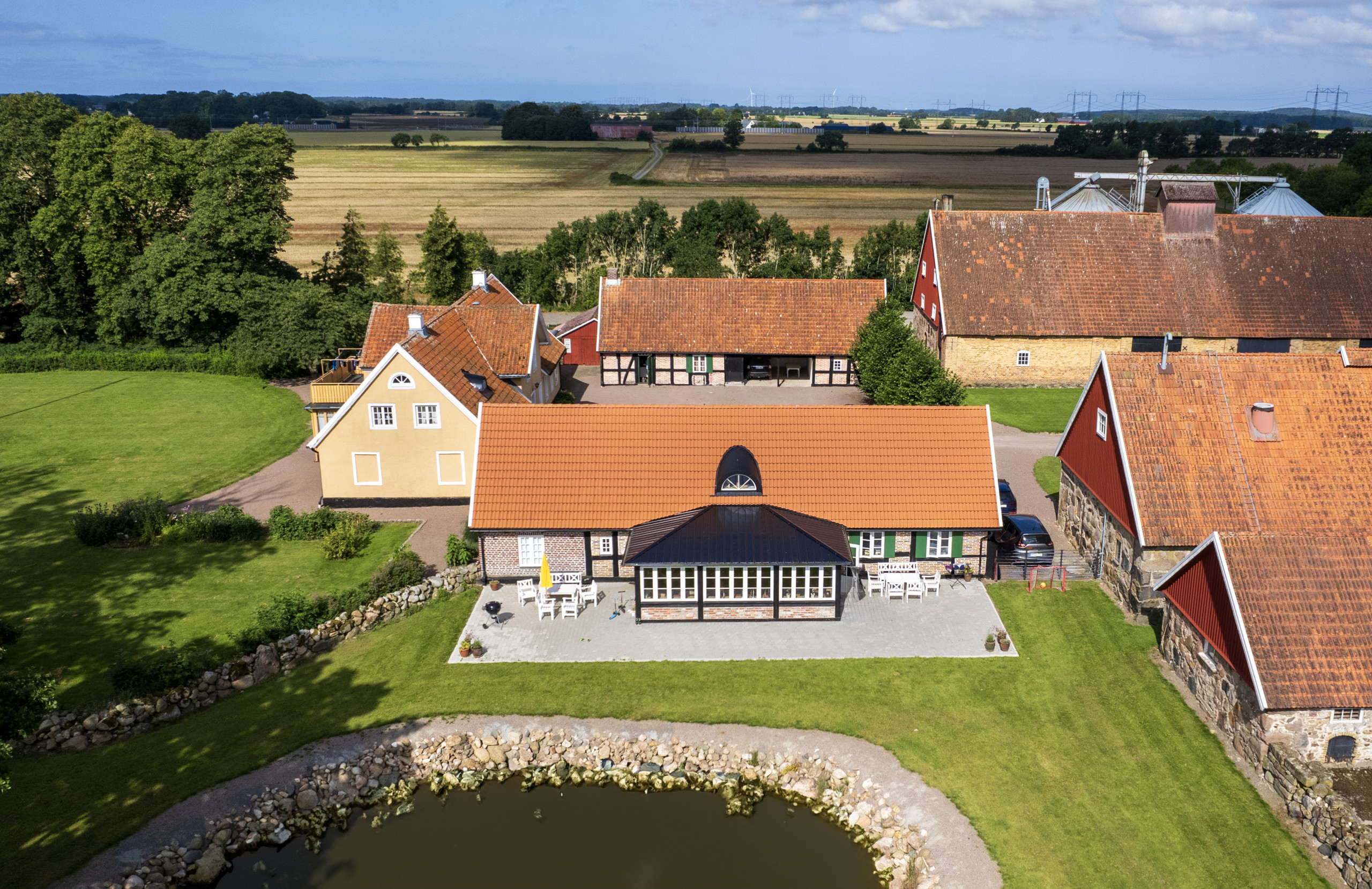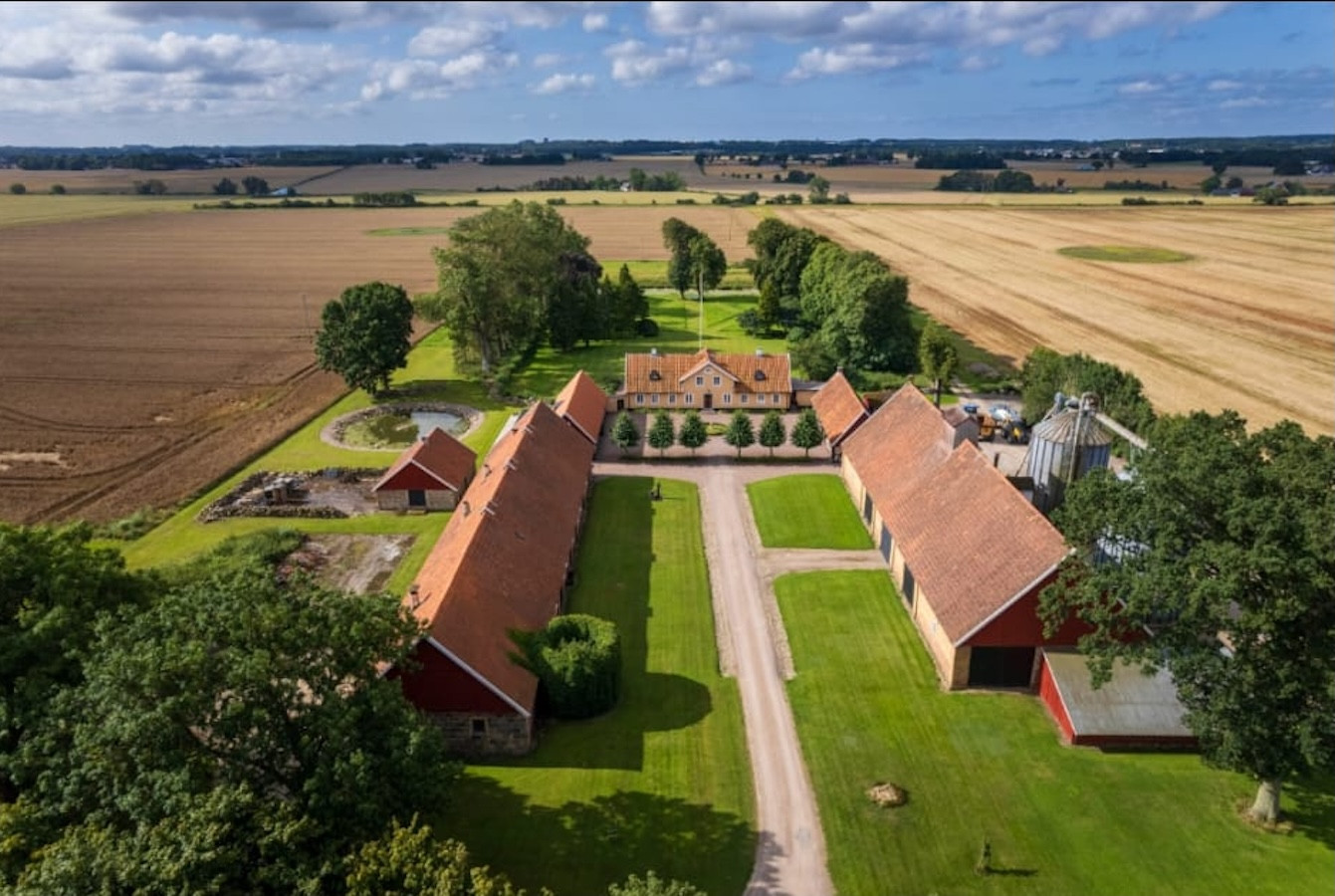 Idylliskt gårdshus i odlingslandskapet