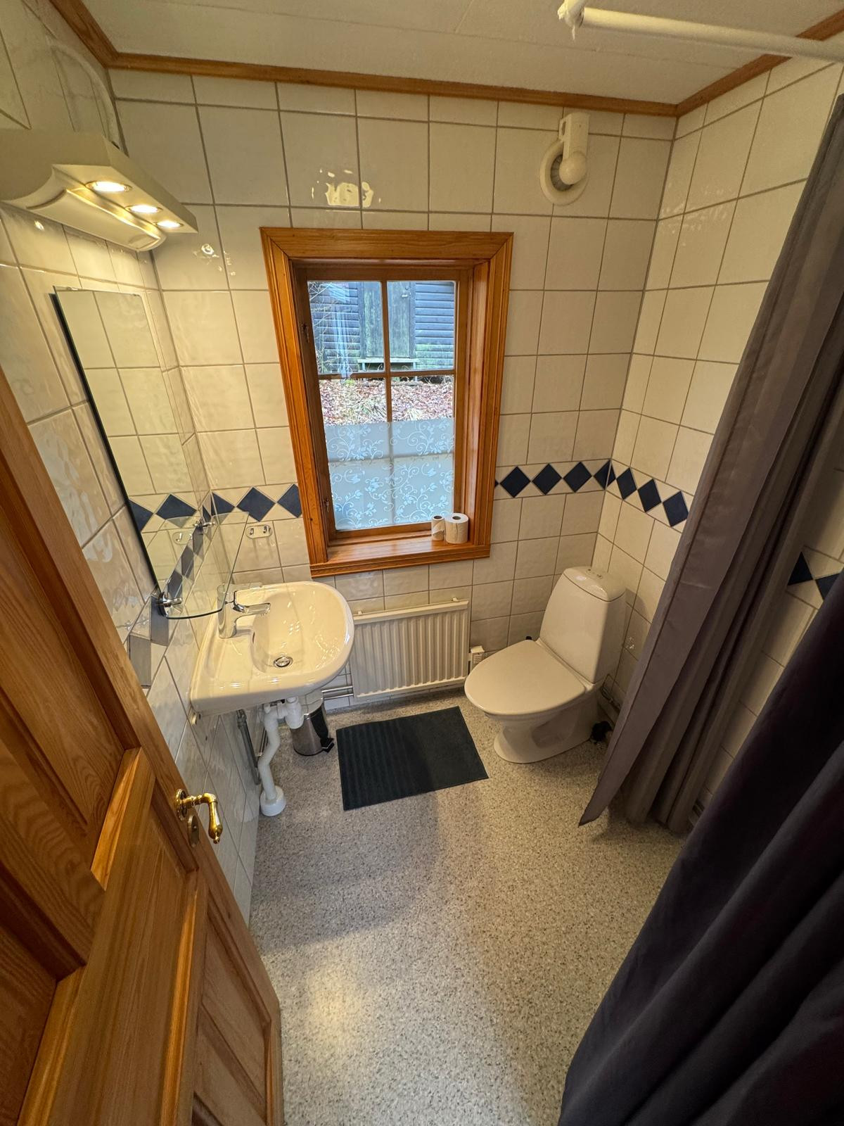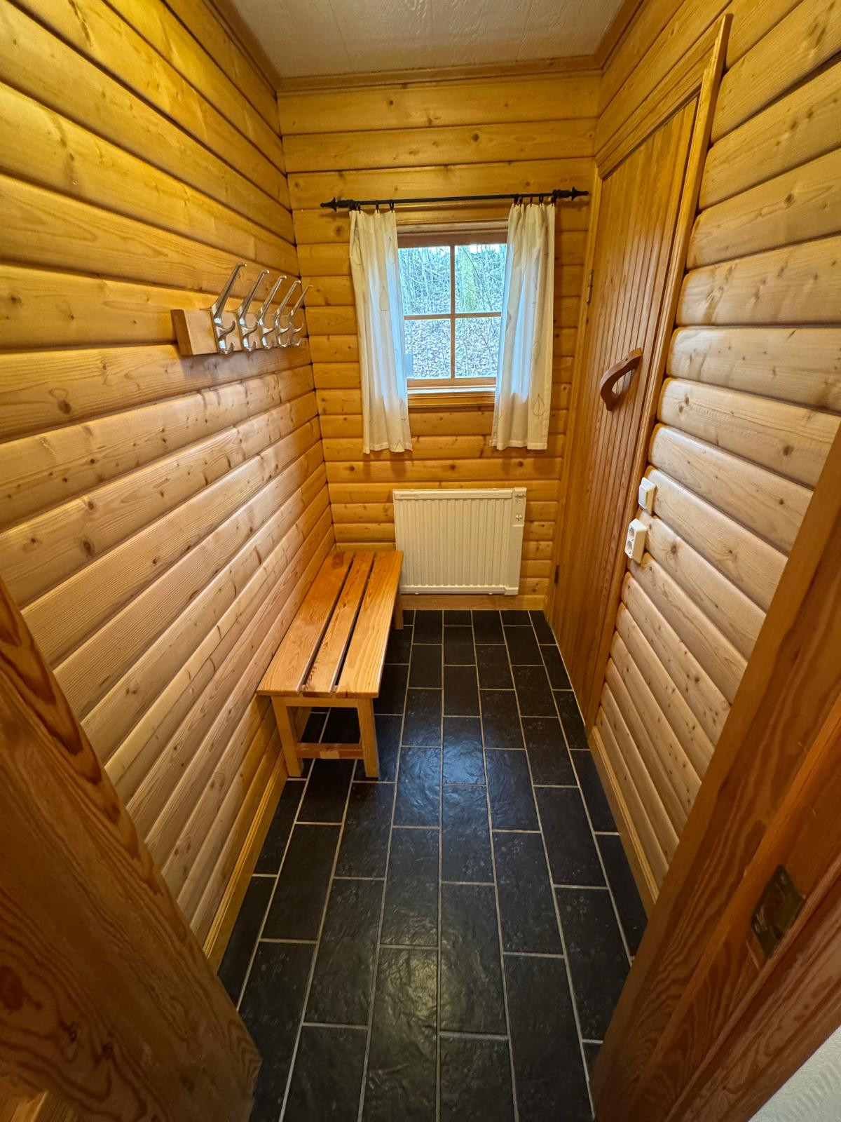 det finns (elektrisk) bastu och dusch i separat byggnad.