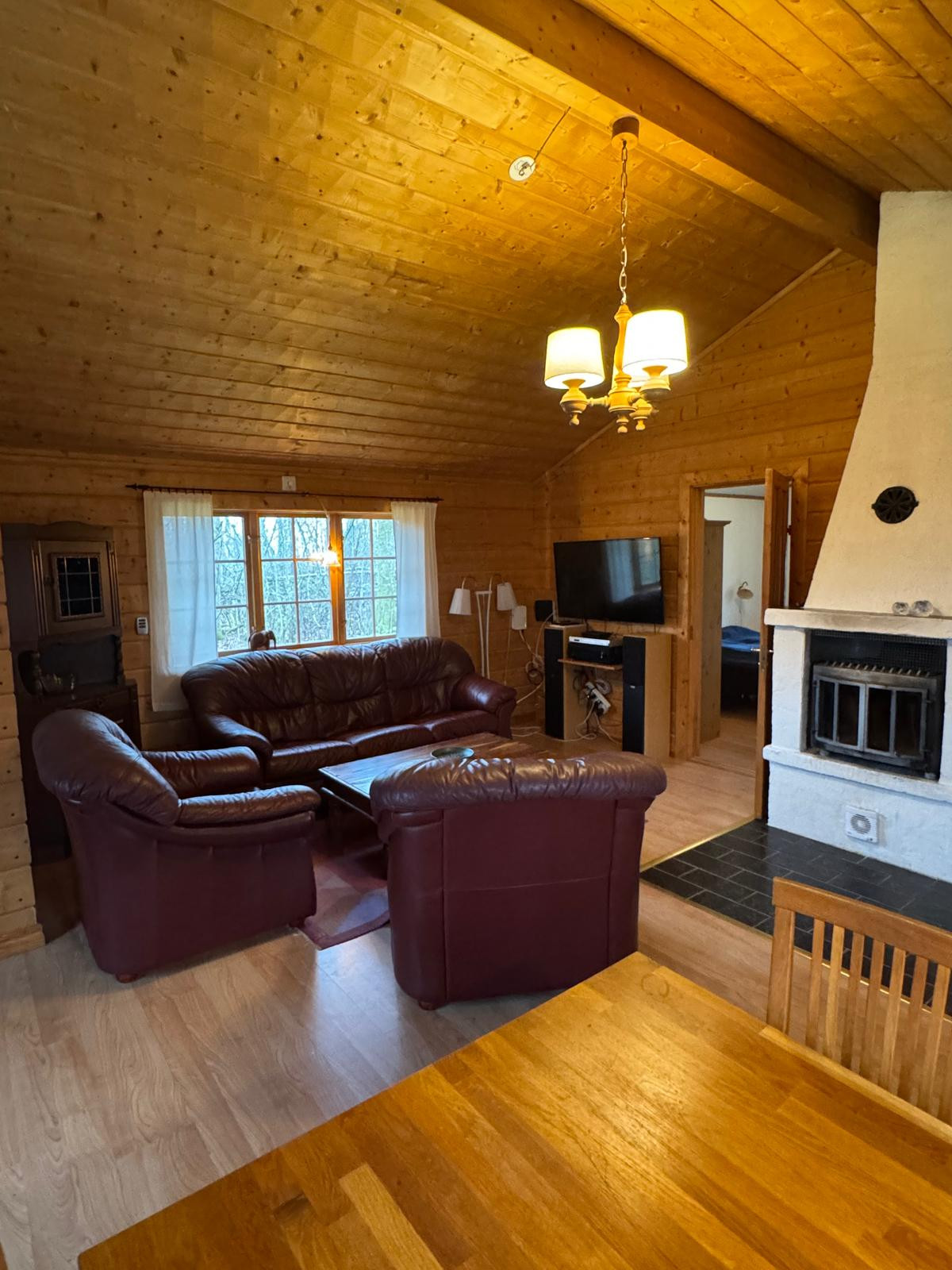 60 kvm stort semesterhus med ostört läge nära fiskrik sjö. Det finns 2 sovrum med 180 cm dubbelsängar. Ett sovloft med 3 st 90 cm enkelsängar nås via trappstege. Ett badrum med tvättmaskin. Välutrustat kök i öppen planlösning med diskmaskin, ihop med vardagsrum och en kamin. Högt i tak och med viss sjöutsikt. Uteplats med stolar och bord. Takad entré med inbyggda sittplatser. Annex med bastu, dusch och relax. Vedbod med gratis tillgång till ved och en grill.