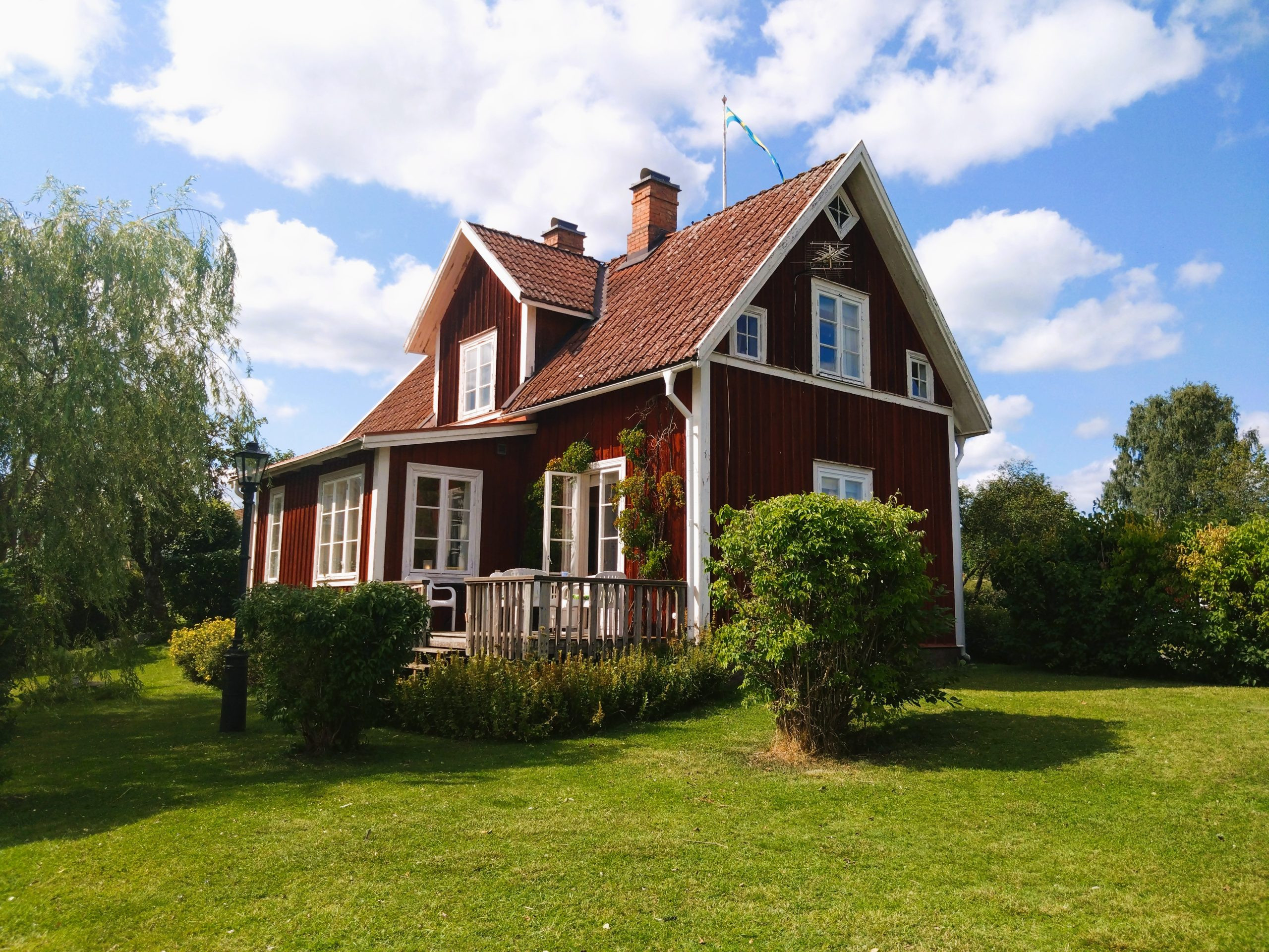 Charmigt rött och vitt fritidshus med sjöutsikt nära Vimmerby