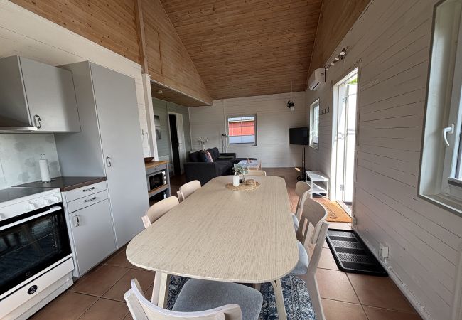 Alla semesterhus har toalett och dusch, kök och ett öppet vardagsrum, samt 3 sovrum med vardera 2 sängar.